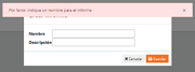 Diálogo de creación de informe.